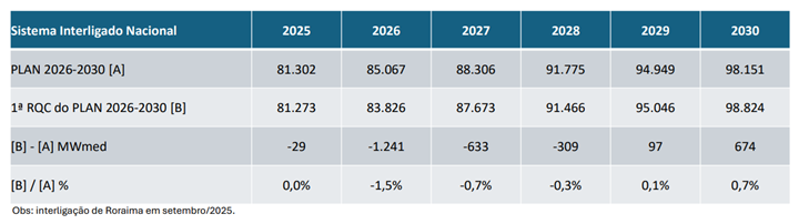 A primeira Revisão Quadrimestral da carga mostra uma projeção de aumento de 3,1% no ano. Caso a previsão se confirme alcançará o valor de 83.826 MW médios no final do ano. Nesse sentido, a projeção para 2030 é de que a carga global alcance 98.824 MW médios. Os resultados consideram a introdução da Micro e Minigeração Distribuída (MMGD), a expansão dos Data Centers e, desde setembro de 2025, a integração de Roraima no Subsistema Norte. Apesar da alta esse dado mostra desaceleração ante o que era esperado no final de 2025.